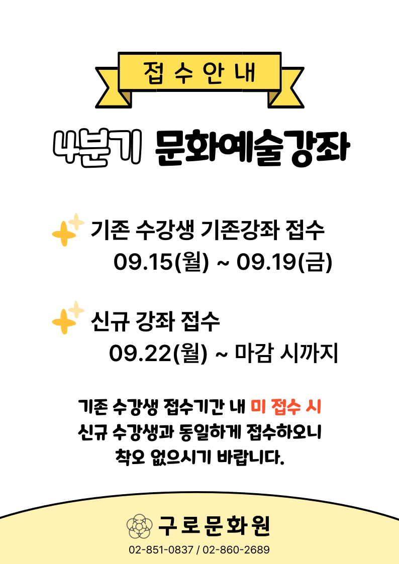 구로문화원 2025년 4분기(10~12월) 문화예술강좌 접수 안내드립니다.