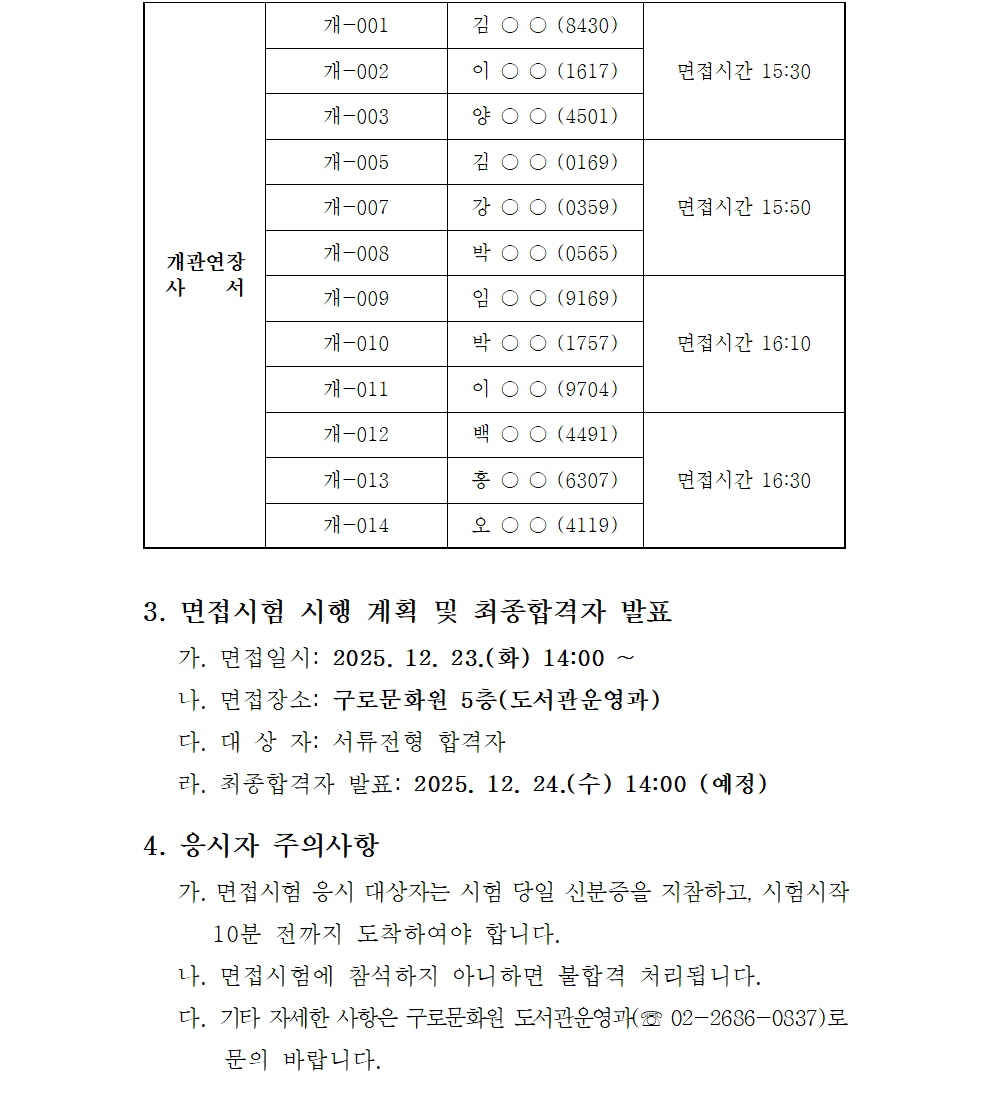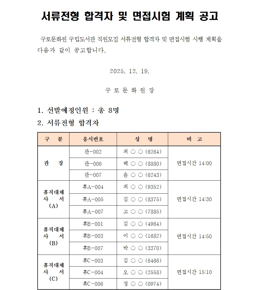 구로문화원 구립도서관 서류전형 합격자 및 면접시험 계획 공고